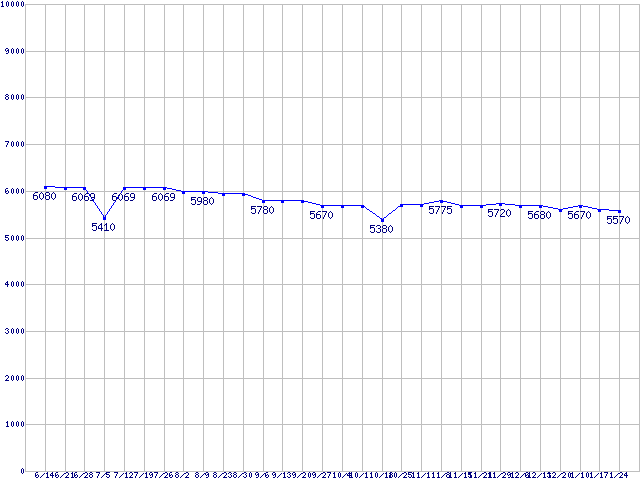 Deskstar 7K160 (7200rpm,SATA 3Gb/s)の最安値推移