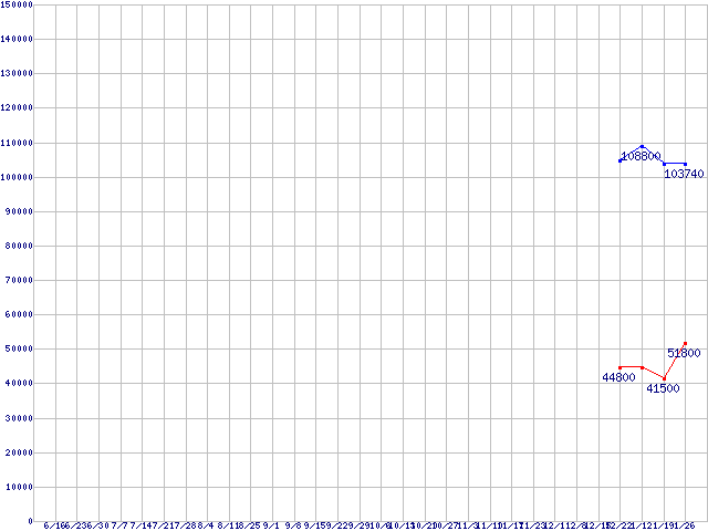 PC2-5300(DDR2-667) DDR2 SDRAM DIMMの最安値推移