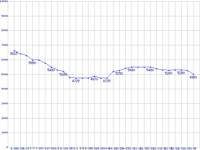 | PC3200(DDR400) DDR SDRAM DIMMの最安値推移 | | | (2007年6月16日~2008年1月26日) |