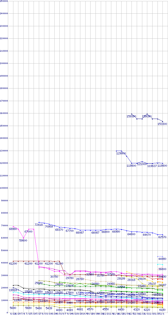 ※製品名をクリックすると個別のグラフを表示します ※点線部は販売店が確認できなかった、または調査データがないことを示します |