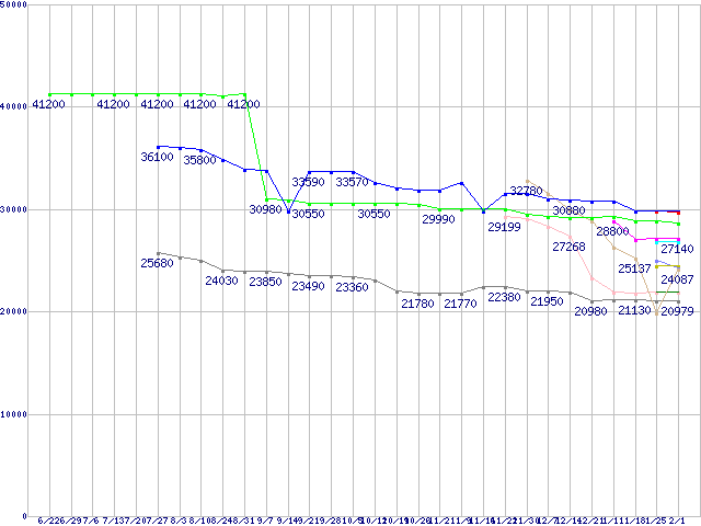 | CPU主要製品(最安値2万円~3万円未満)の最安値推移 | | | (2007年6月22日~2008年2月1日) |