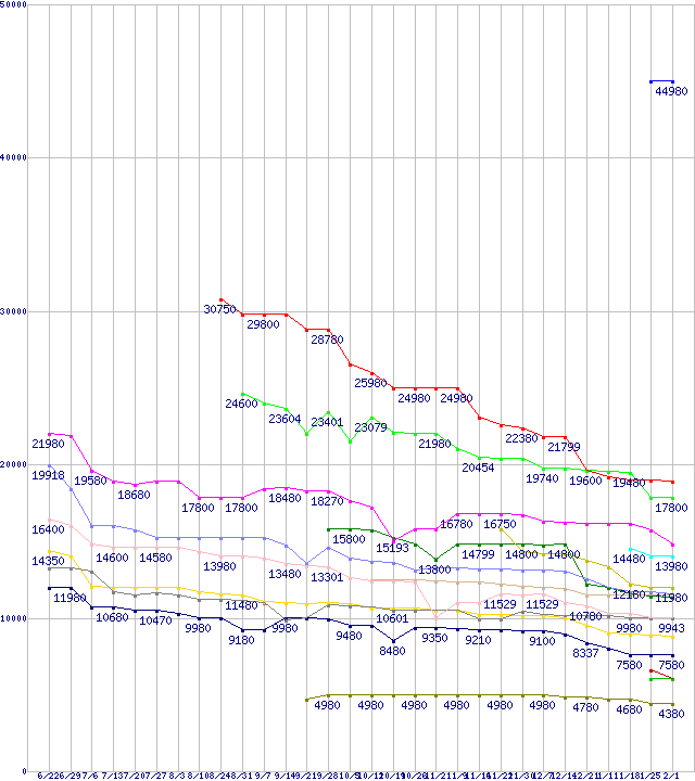※製品名をクリックすると個別のグラフを表示します ※点線部は販売店が確認できなかった、または調査データがないことを示します |