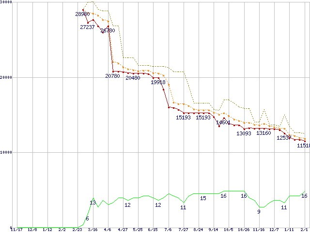 | Athlon 64 X2 5000+ (2.6GHz,L2 512KB×2,TDP65W)の価格推移 | | | (2006年11月17日~2008年2月1日) |