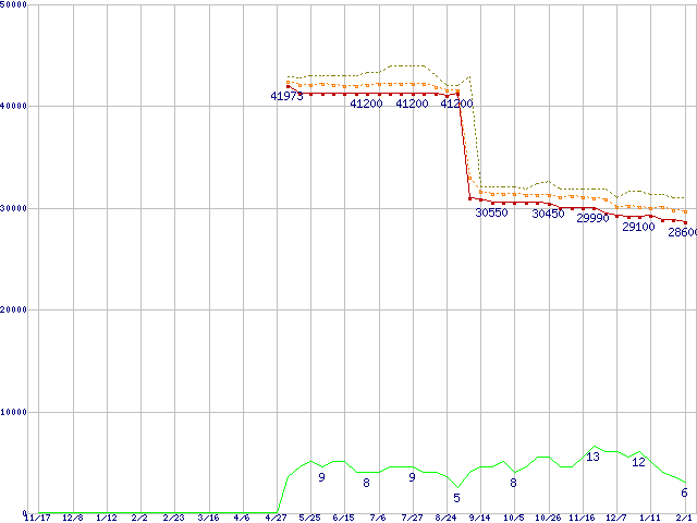 | Core 2 Duo T7500 (2.2GHz,L2 4MB)の価格推移 | | | (2006年11月17日~2008年2月1日) |