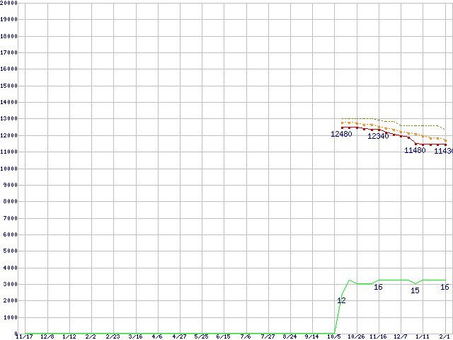| Athlon X2 BE-2400 (2.3GHz,L2 512KB×2)の価格推移 | | | (2006年11月17日~2008年2月1日) |