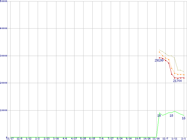 | Phenom 9500 (2.2GHz,L2 512KB×4,L3 2MB)の価格推移 | | | (2006年11月17日~2008年2月1日) |
