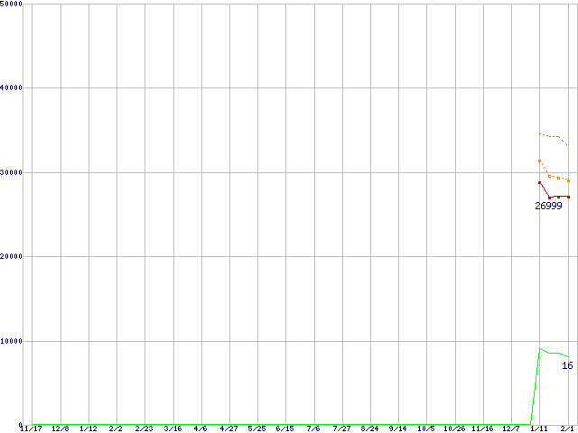 | Phenom 9600 Black Edition (2.3GHz,L2 512KB×4,L3 2MB)の価格推移 | | | (2006年11月17日~2008年2月1日) |
