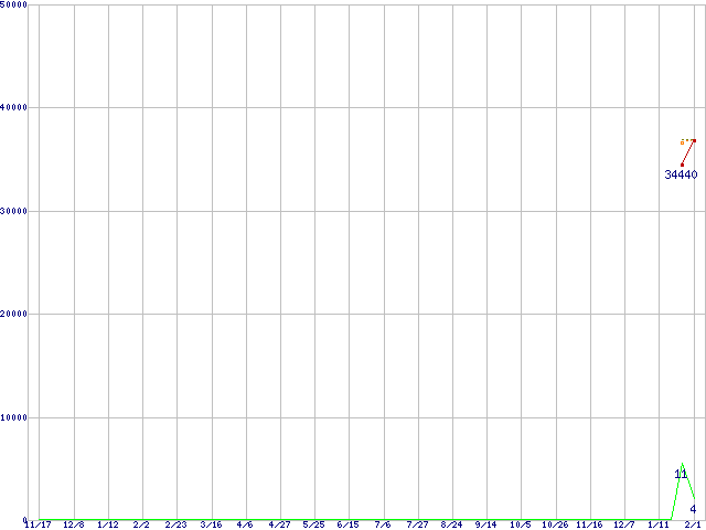 | Core 2 Duo E8500 (3.16GHz,L2 6MB)の価格推移 | | | (2006年11月17日~2008年2月1日) |