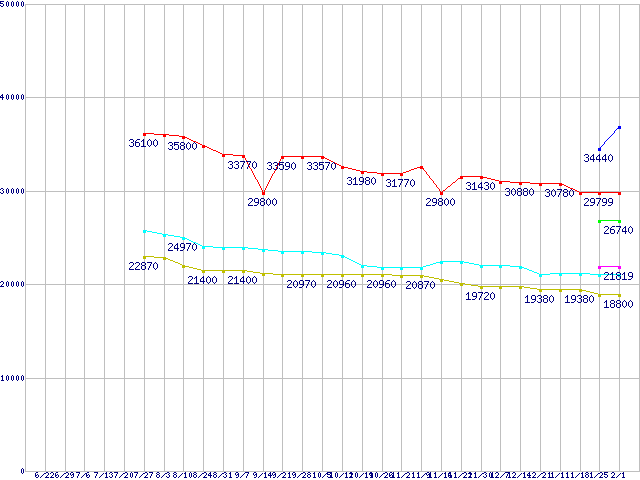 LGA775 (FSB 1333MHz,Dual Core,TDP 65W)の最安値推移