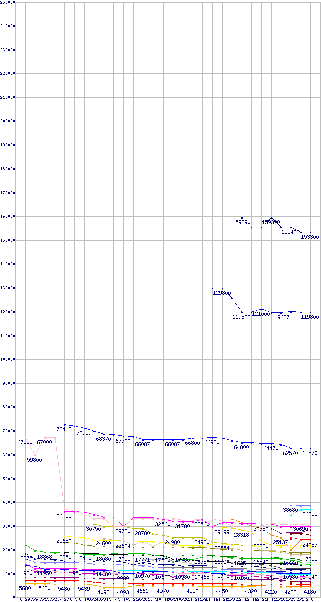 | CPU主要製品の最安値推移 | | | (2007年6月29日~2008年2月8日) |