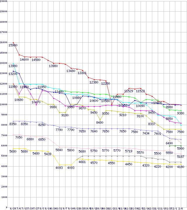 CPU主要製品(最安値1万円~2万円未満)の最安値推移