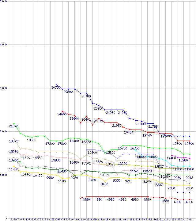 ※製品名をクリックすると個別のグラフを表示します ※点線部は販売店が確認できなかった、または調査データがないことを示します |