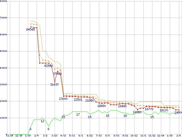 | Athlon 64 X2 5600+ (2.8GHz,L2 1MB×2)の価格推移 | | | (2006年11月24日~2008年2月8日) |