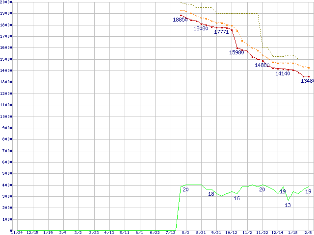 | Core 2 Duo E4500 (2.20GHz,L2 2MB)の価格推移 | | | (2006年11月24日~2008年2月8日) |
