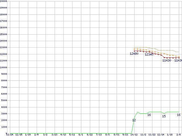 | Athlon X2 BE-2400 (2.3GHz,L2 512KB×2)の価格推移 | | | (2006年11月24日~2008年2月8日) |
