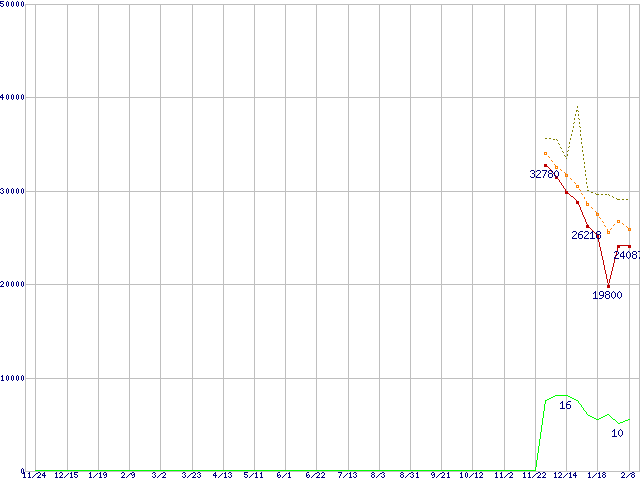 | Phenom 9600 (2.3GHz,L2 512KB×4,L3 2MB)の価格推移 | | | (2006年11月24日~2008年2月8日) |