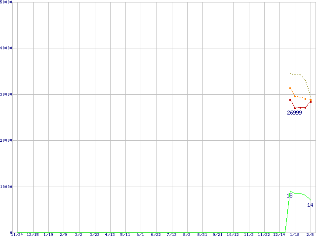 | Phenom 9600 Black Edition (2.3GHz,L2 512KB×4,L3 2MB)の価格推移 | | | (2006年11月24日~2008年2月8日) |