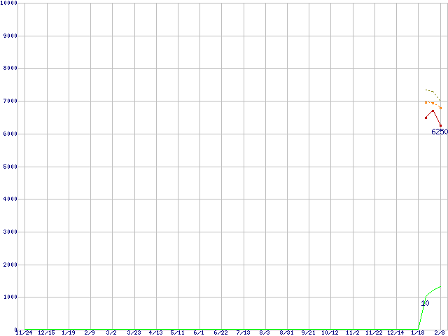 | Celeron Dual-Core E1200 (1.6GHz)の価格推移 | | | (2006年11月24日~2008年2月8日) |