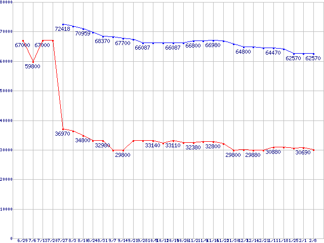 LGA775 (FSB 1333MHz,Dual Core,TDP 65W)の最安値推移