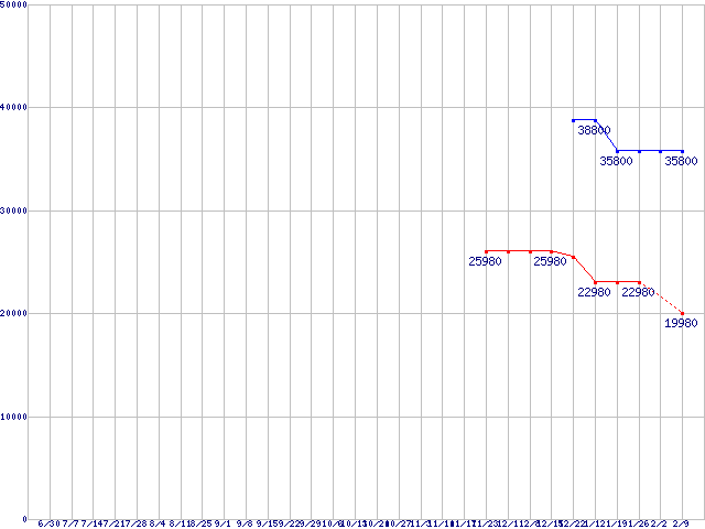 PC3200(DDR400) DDR SDRAM DIMMの最安値推移