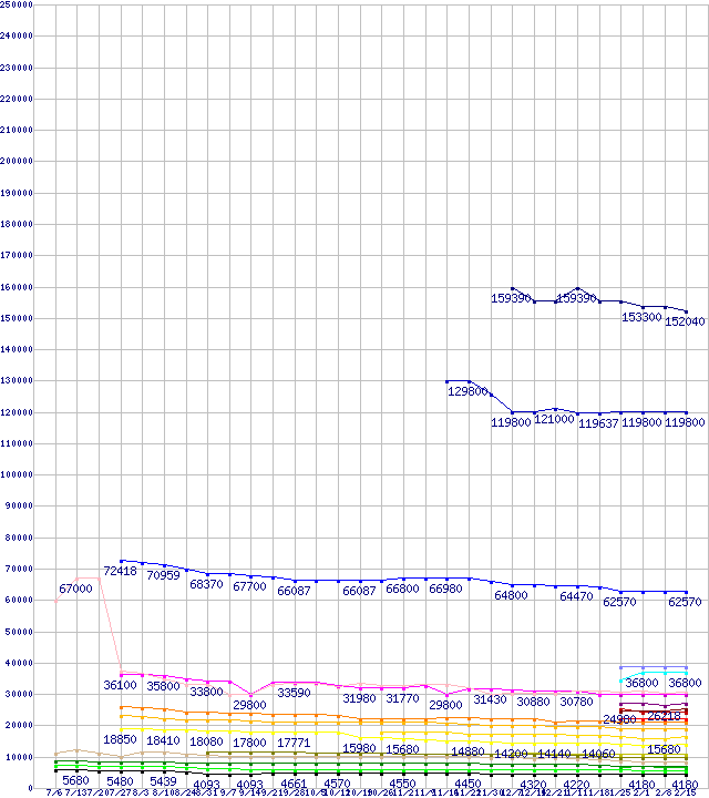 | Intel系CPUの最安値推移 | | | (2007年7月6日~2008年2月15日) |