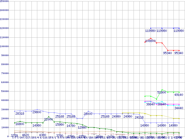 メモリ主要製品の最安値推移