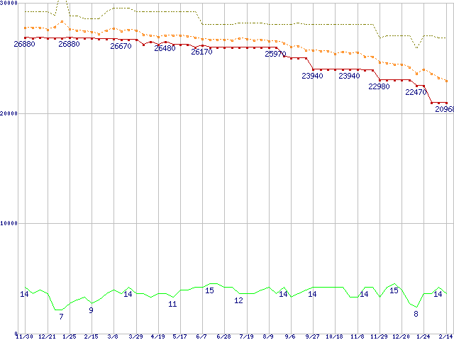 | WD1500ADFD (150.0GB)の価格推移 | | | (2006年11月30日~2008年2月14日) |