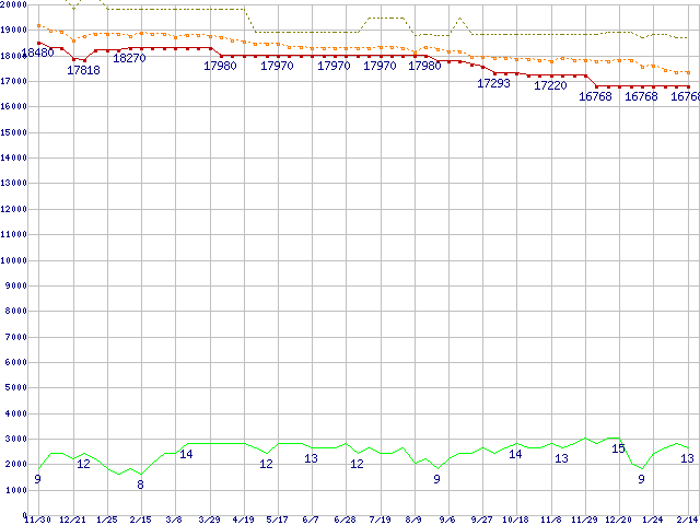 | WD740ADFD (74.3GB)の価格推移 | | | (2006年11月30日~2008年2月14日) |