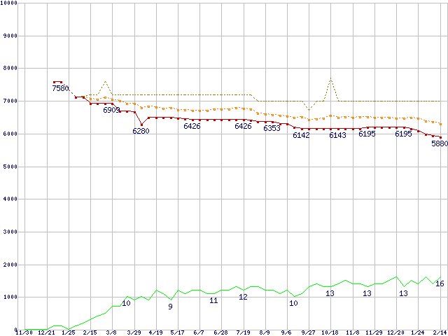 | ST3160815AS (160GB,8MB)の価格推移 | | | (2006年11月30日~2008年2月14日) |