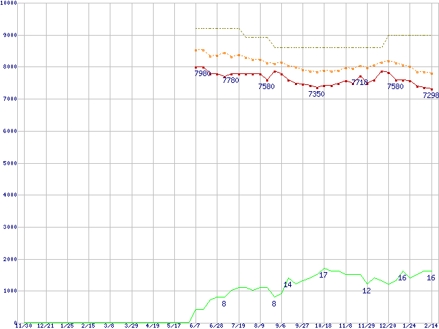 | ST3250410AS (250GB,16MB)の価格推移 | | | (2006年11月30日~2008年2月14日) |