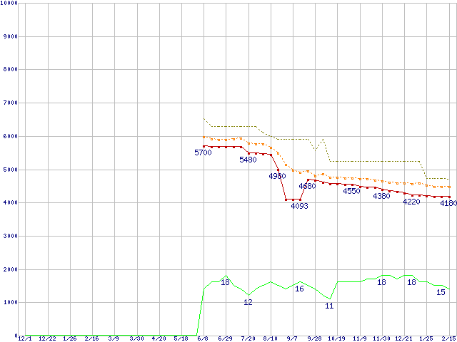 | Celeron 420 (1.6GHz)の価格推移 | | | (2006年12月1日~2008年2月15日) |