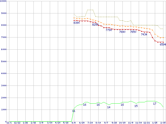 | Celeron 440 (2.0GHz)の価格推移 | | | (2006年12月1日~2008年2月15日) |