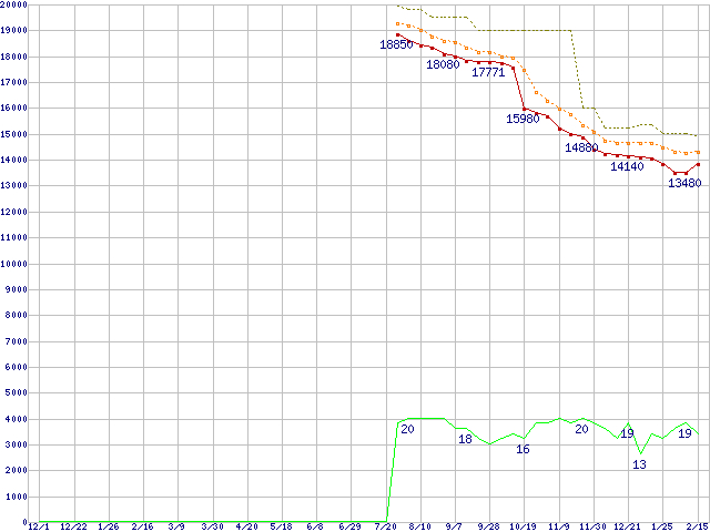 | Core 2 Duo E4500 (2.20GHz,L2 2MB)の価格推移 | | | (2006年12月1日~2008年2月15日) |