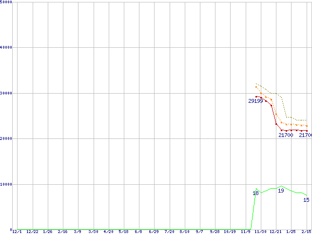 | Phenom 9500 (2.2GHz,L2 512KB×4,L3 2MB)の価格推移 | | | (2006年12月1日~2008年2月15日) |
