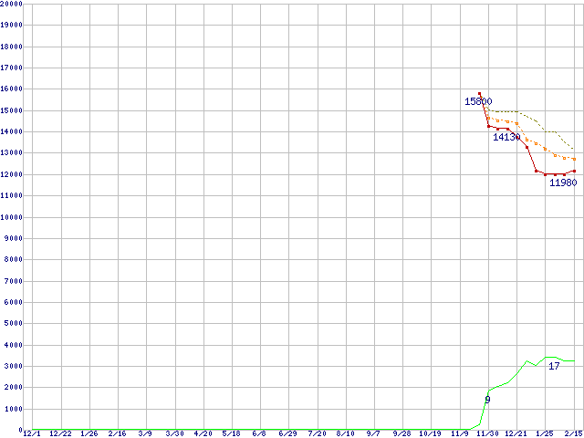 | Athlon 64 X2 5200+ (2.7GHz,L2 512KB×2,TDP65W)の価格推移 | | | (2006年12月1日~2008年2月15日) |