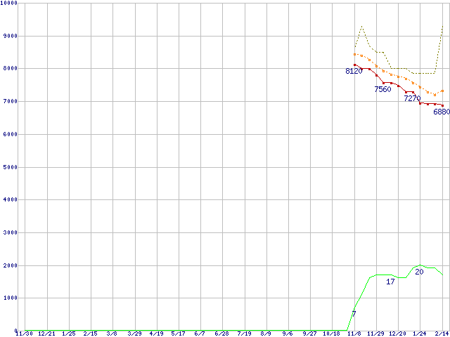 | HDP725025GLA380 (250GB,8MB)の価格推移 | | | (2006年11月30日~2008年2月14日) |