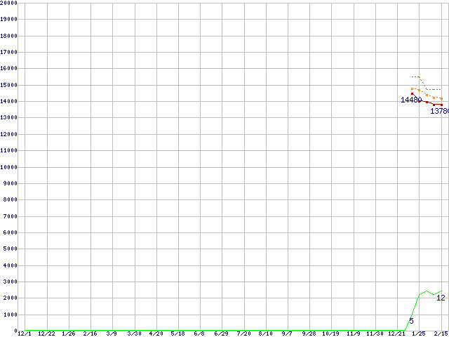 | Athlon 64 X2 5400+ (2.8GHz,L2 512KB×2,TDP65W)の価格推移 | | | (2006年12月1日~2008年2月15日) |