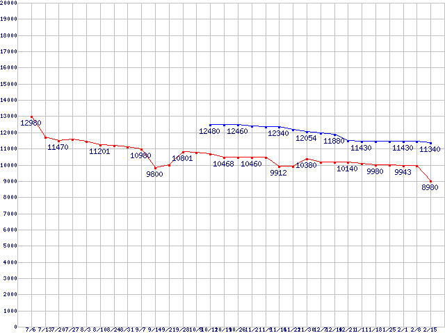 Socket AM2 (HyperTransport,Dual Core)の最安値推移