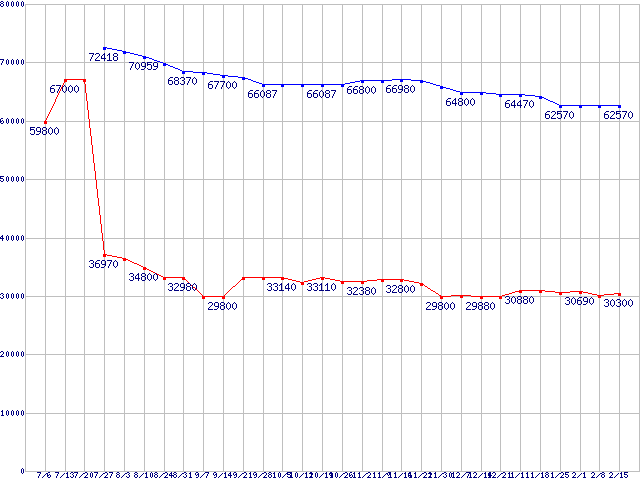 LGA775 (FSB 1333MHz,Dual Core,TDP 65W)の最安値推移