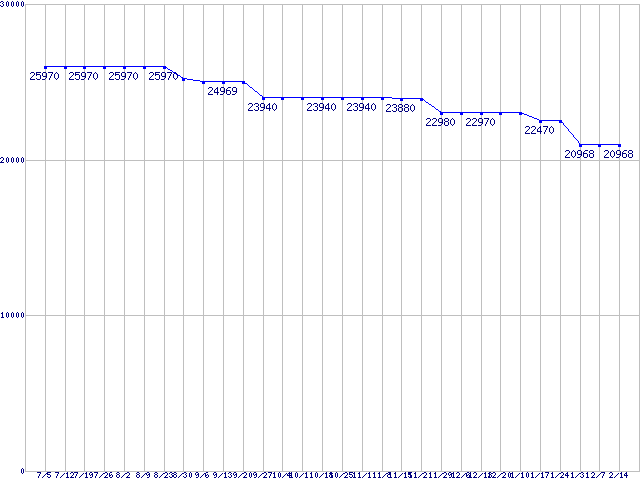 WD Raptor (10000rpm,SATA 1.5Gb/s,16MB,NCQ)の最安値推移