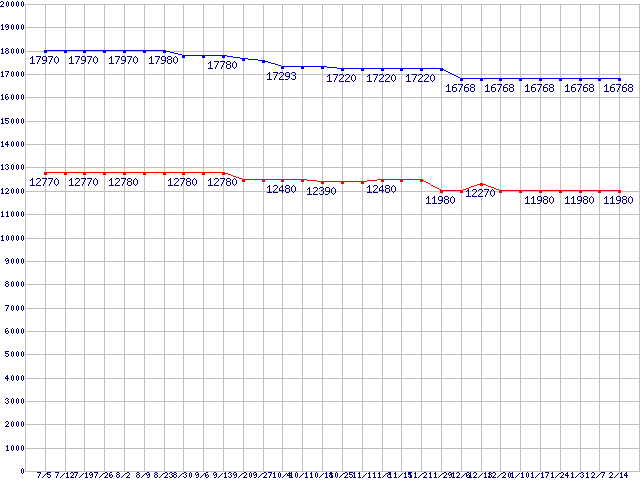 WD Raptor (10000rpm,SATA 1.5Gb/s,16MB,NCQ)の最安値推移