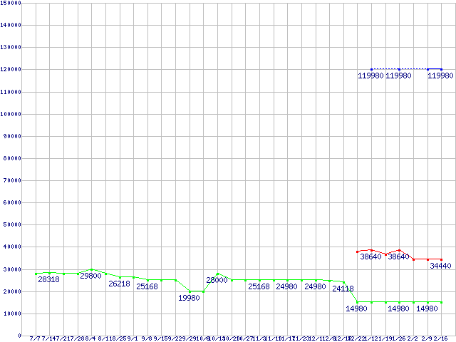 PC3-12800(DDR3-1600) DDR3 SDRAM DIMMの最安値推移