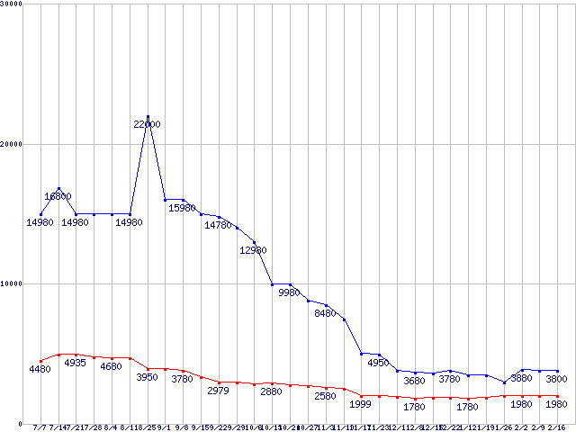 PC2-6400(DDR2-800) DDR2 SDRAM DIMMの最安値推移