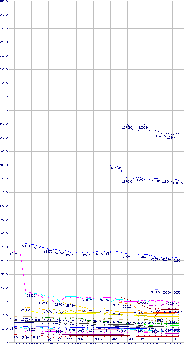 | CPU主要製品の最安値推移 | | | (2007年7月13日~2008年2月22日) |