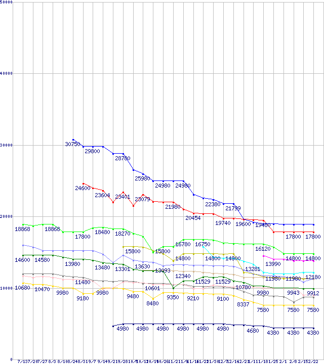 | AMD系CPUの最安値推移 | | | (2007年7月13日~2008年2月22日) |