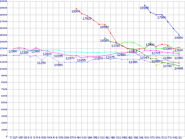 HDD主要製品(最安値1万5千円~2万円未満)の最安値推移
