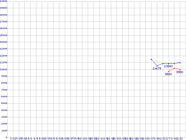 HDD 400~500GB未満の最安値推移