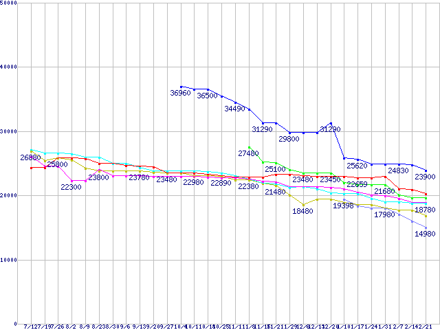 ※点線部は販売店が確認できなかった、または調査データがないことを示します