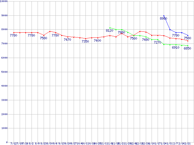 HDD 160~200GB未満の最安値推移
