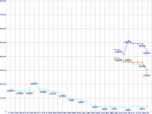 メモリ主要製品の最安値推移